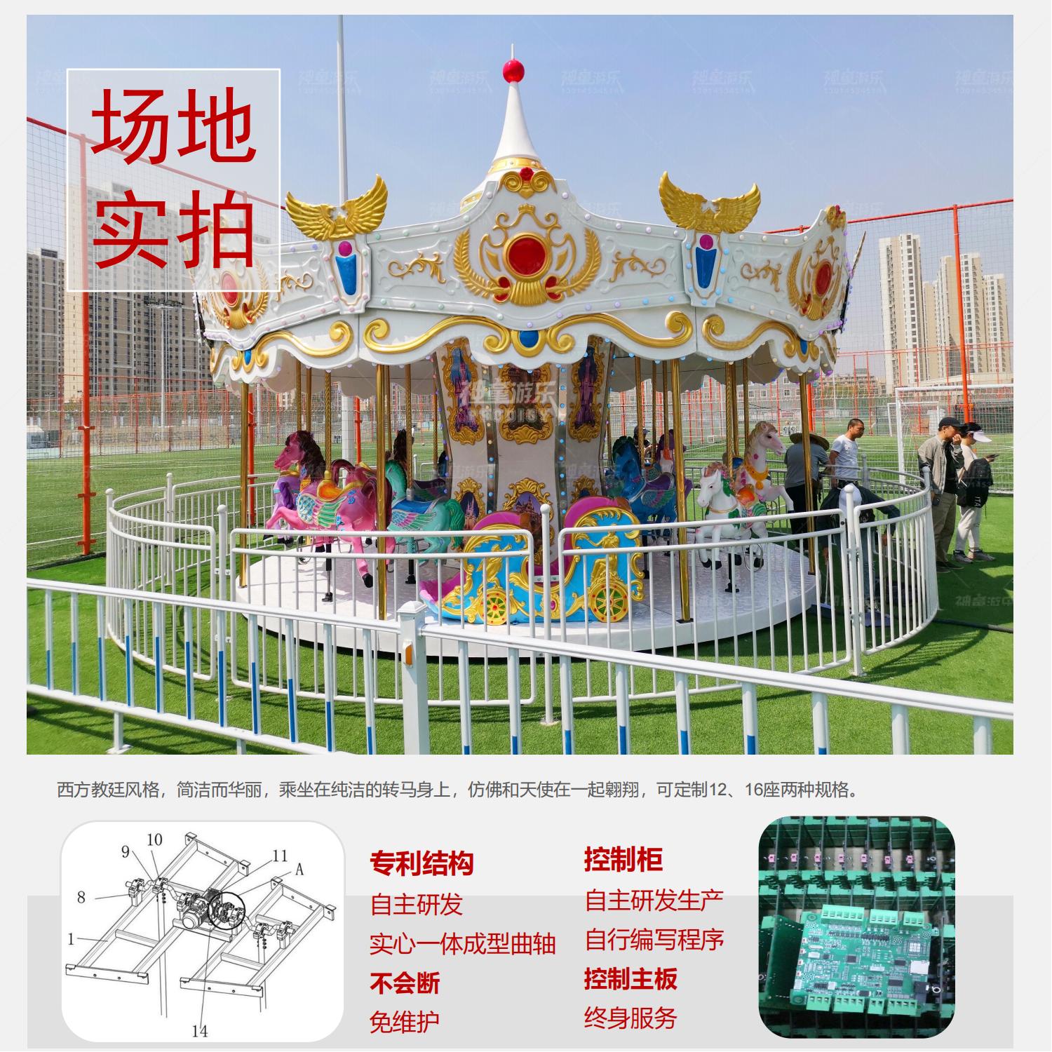 西方教廷風格,簡潔而華麗,乘坐在純潔的轉馬身上,仿佛和天使在一起翱翔,可定制12、16座兩種規(guī)格。