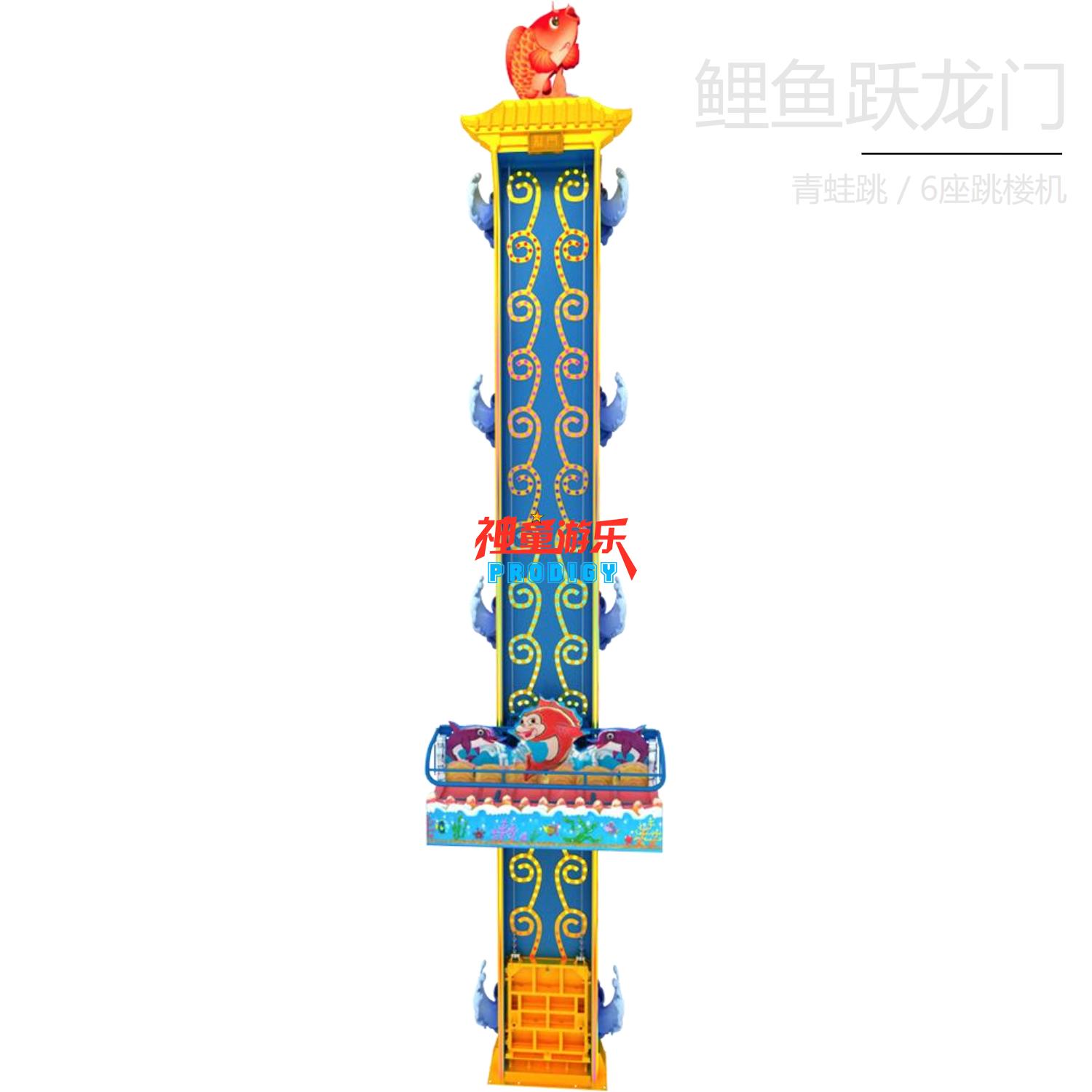 鯉魚躍龍門是一款青蛙跳設(shè)備,是屬于一種勻速升高、分段下降的游樂設(shè)備,設(shè)備配有六個(gè)座位。其主要結(jié)構(gòu)為龍門架,座椅油缸。操作人員待游客坐好后,扣好安全帶、桿,游客升高到一定高度,然后會(huì)跳躍式分段下降,猶如坐在大青蛙的背上蹦蹦跳跳的感覺。深受游客的喜歡,特別是青少年游客的喜愛。